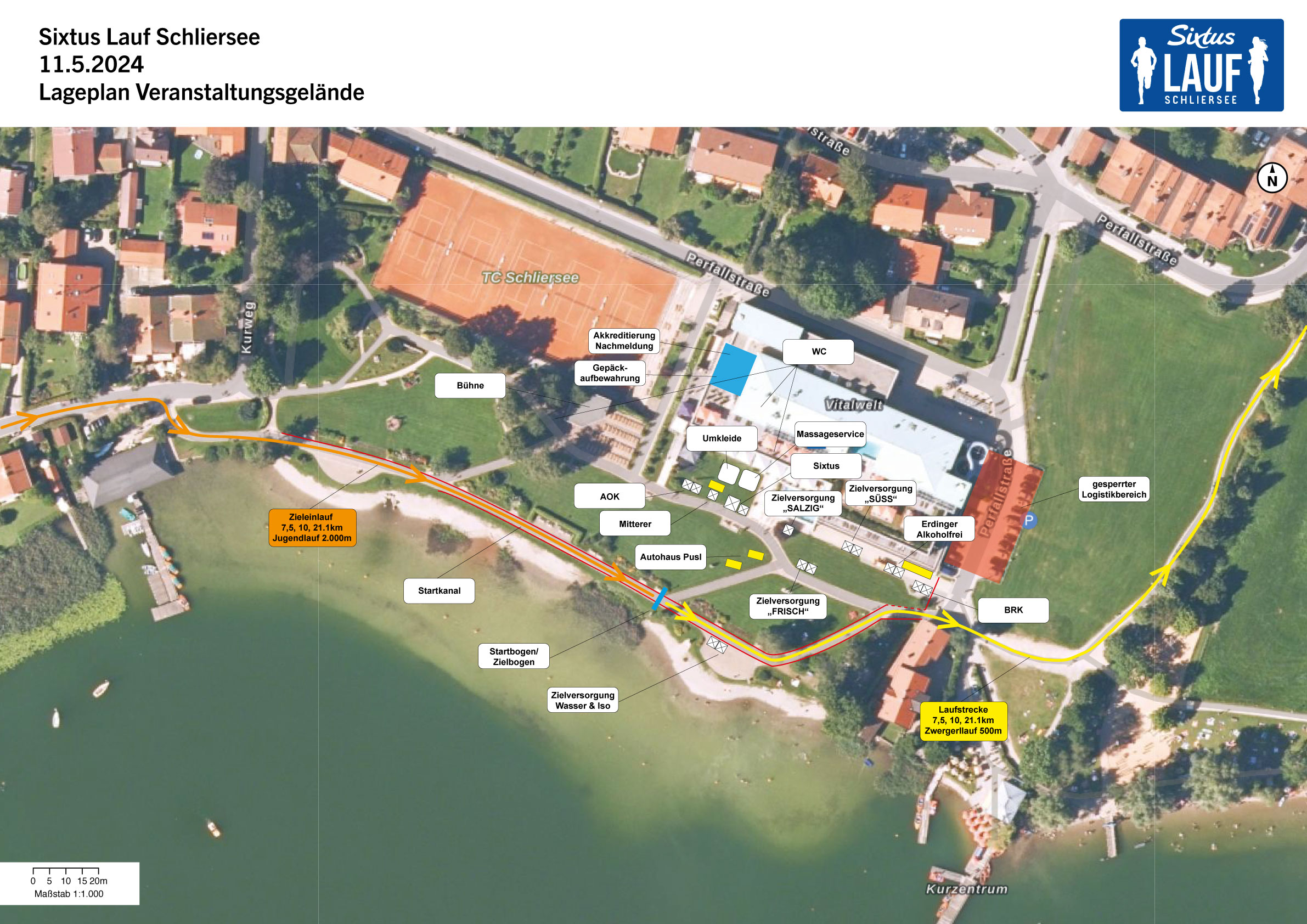 Samstag, 10. Mai 2025ab 9:00 Uhr: Startunterlagenausgabe in der vitalwelt schliersee (bis max 12:30 Uhr) 12:00 Uhr: Start Kinder- und Jugend-Lauf (2000m) 12:30 Uhr: Start Zwergerl-Lauf (500m) 13:00 Uhr: Siegerehrung Zwergerl-/ Kinder- und Jugendläufe 13:00 Uhr: Ende Akkreditierung 14:00 Uhr: Start der 21.1 km, 10 km und 7.5 km Lauf Distanzen 14:05 Uhr: Start der 10 km und 7.5 km Walking Distanzen (bitte am Ende der Startgasse aufstellen!) ab 14:20 Uhr: Massage-Service mit Sixtus Produkten 17:00 Uhr: Siegerehrung 21.1 km, 10 km und 7.5 km 18:00 Uhr: Ende der Veranstaltung |